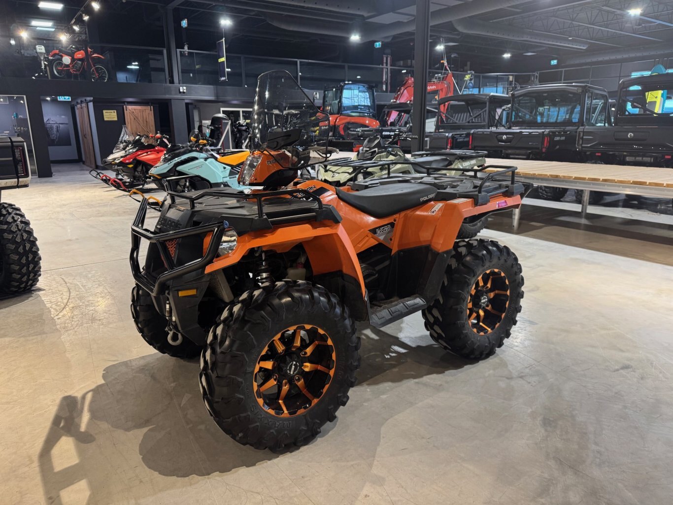 Comes with windshield, heated grips, front and rear bumpers and cargo racks, winch, power steering